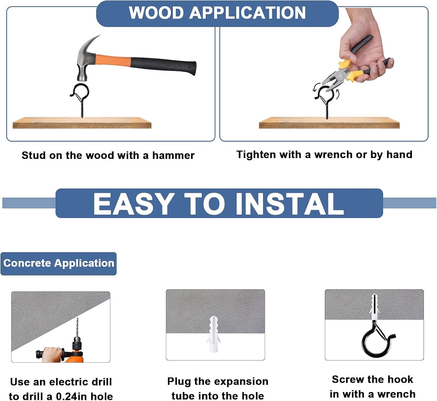 Parfaits pour une utilisation en intérieur comme en extérieur, ils sont faciles à installer sur le bois, les murs, les clôtures, les plafonds, les arbres ou les terrasses. Avec une capacité de charge allant jusqu'à 18 kg (40 lbs), ces crochets sont conçus pour durer et offrent un support fiable pour tout, des guirlandes lumineuses aux pots de fleurs, en passant par les nichoirs et les carillons éoliens.