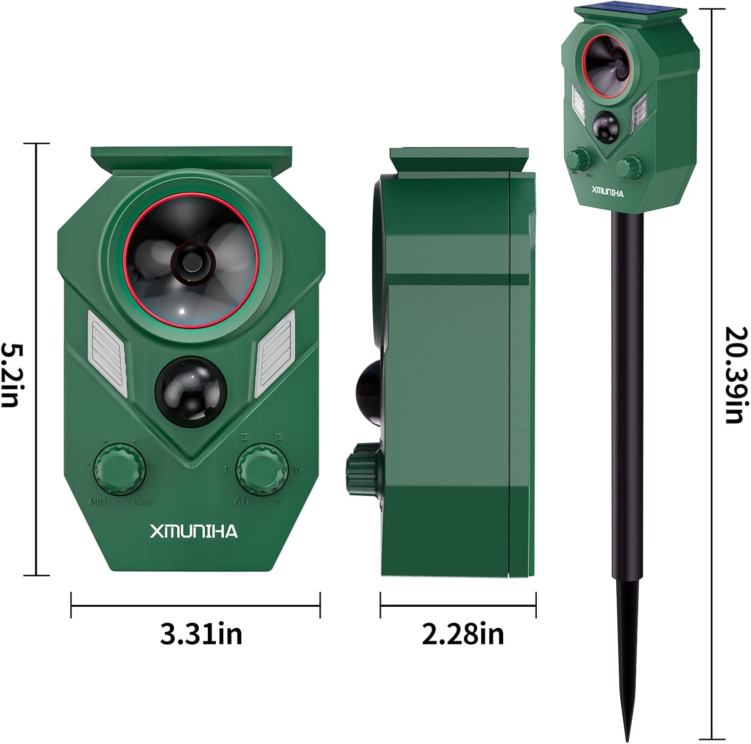 Répulsif Solaire à Ultrasons pour Animaux – Activé par Mouvement, Étanche, avec Lumière Stroboscopique et Sensibilité Réglable